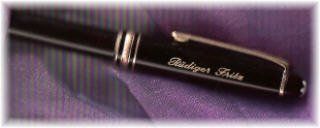 In der manuellen Maschinengravur gravieren wir unter anderem Edelstahlbestecke, Schreibgeräte, Pokale u. ä.. Hierfür stehen verschiedene Schriften in Form von Schablonen zur Verfügung.